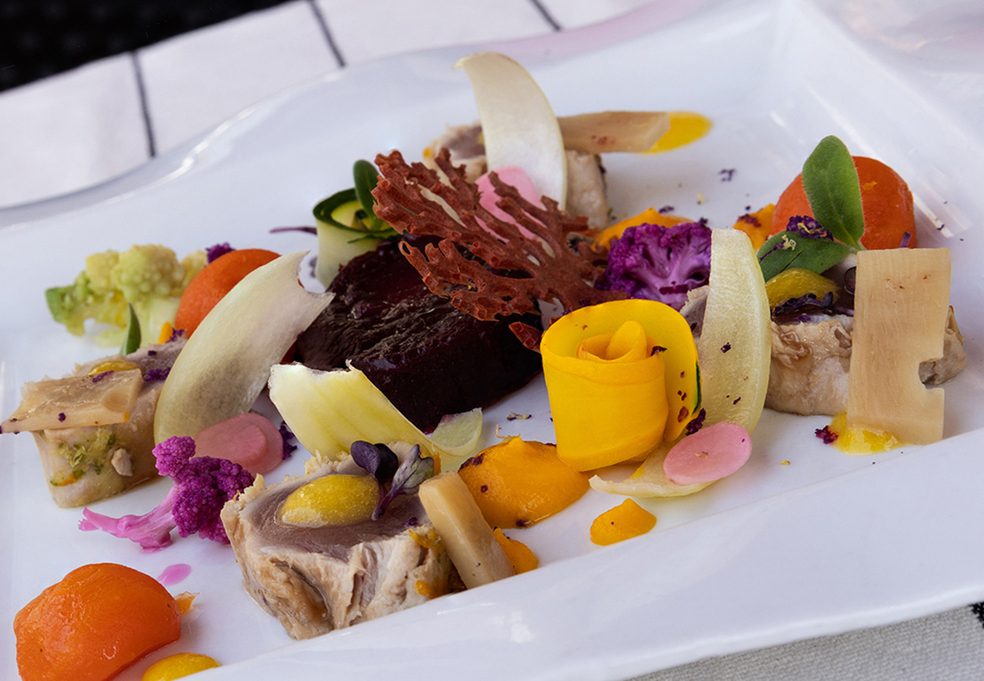 En cuisine, le chef Kevin Fabre s’attache à concocter des plats de haute volée, à élaborer des assiettes raffinées riches de compositions élégantes, généreuses, pleines de saveurs et de fraîcheur.